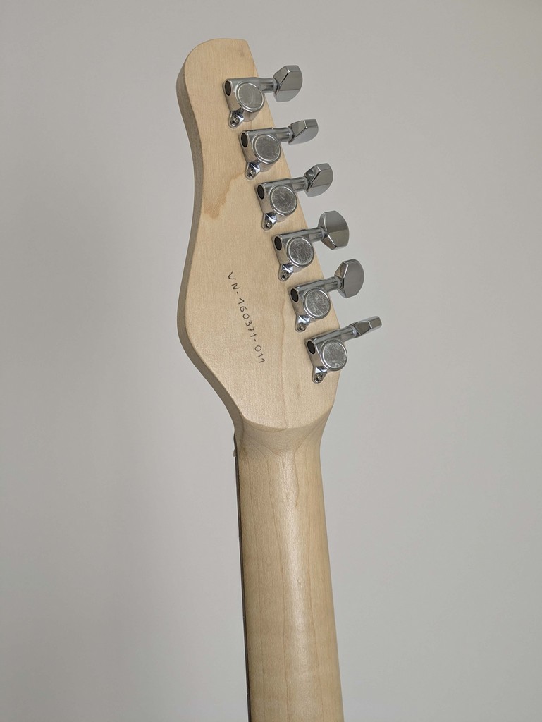 - Straight wire maple neck on quarter screwed V-soft profile 4 M6 inserts, true oil finish